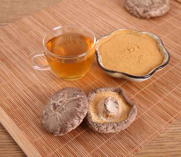 Fresh shiitake mushroom – air drying – crush to coarse powder(50 mesh) – cracking the cell walls – 3 times of water extraction – concentration – refining – spray drying – sieving with the 80 mesh screen – packaging – testing physical and chemical indicators – warehousing